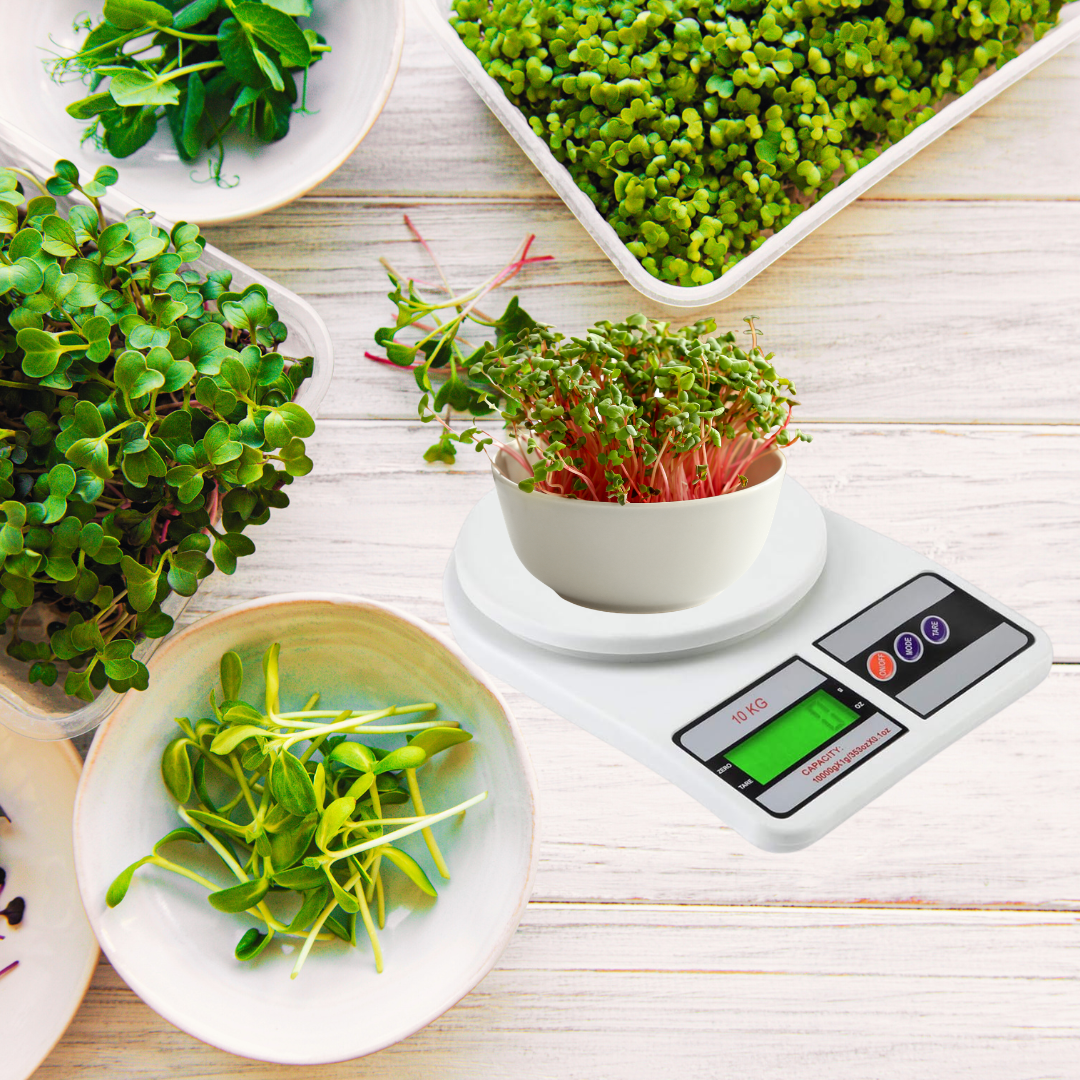 Measure Right. Grow Better. This digital weighing scale ensures accurate seed measurement, helping you avoid overcrowding and achieve consistent, high-quality microgreens growth.