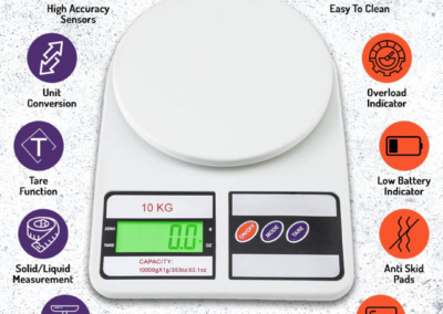 Whether you’re measuring portions for a diet, tracking calories, or prepping meals, this weighing scale for kitchen is your go-to weight machine for food and all other kitchen tasks.