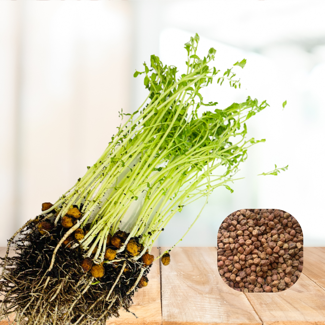 Black Bengal Gram seeds produce nutrient-rich microgreens with thick stems and soft green leaves. These microgreens have a mild nutty flavor and are commonly used in protein-rich salads and Indian dishes.