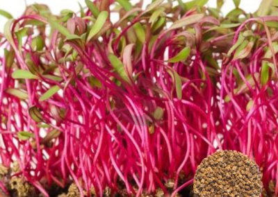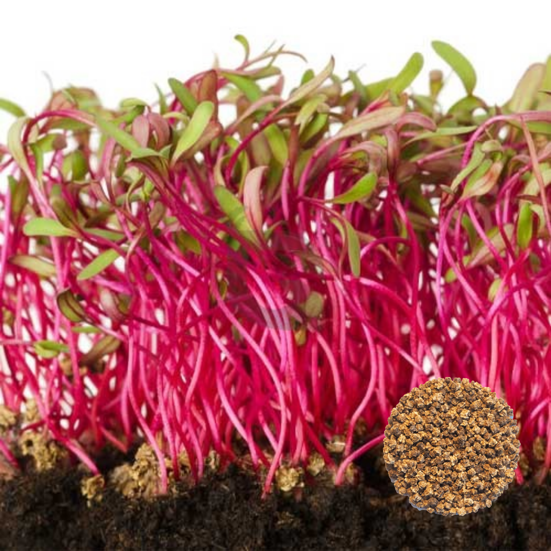 Bull’s Blood Beet seeds grow into striking deep-red microgreens known for their rich color, tender leaves, and mild earthy flavor. These microgreens add vibrant color and nutrition to salads, wraps, sandwiches, grain bowls, and gourmet dishes.