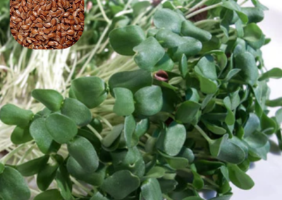 Flax microgreens have a mild nutty flavor with soft tender leaves.
