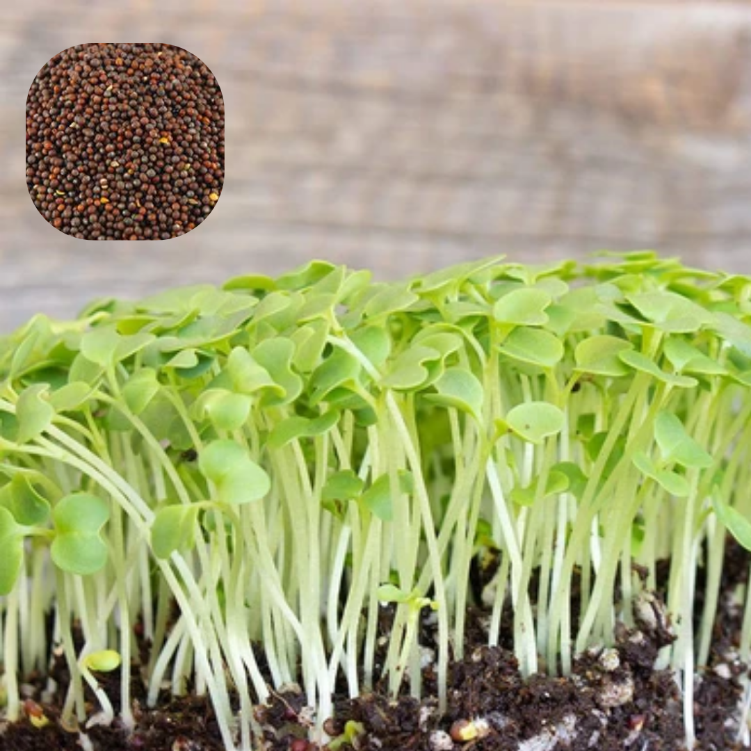 Green Mustard seeds grow into vibrant microgreens with tender leaves and a bold peppery flavor. These microgreens add a natural spicy kick to everyday meals such as parathas, dal rice, chaat, and vegetable dishes.