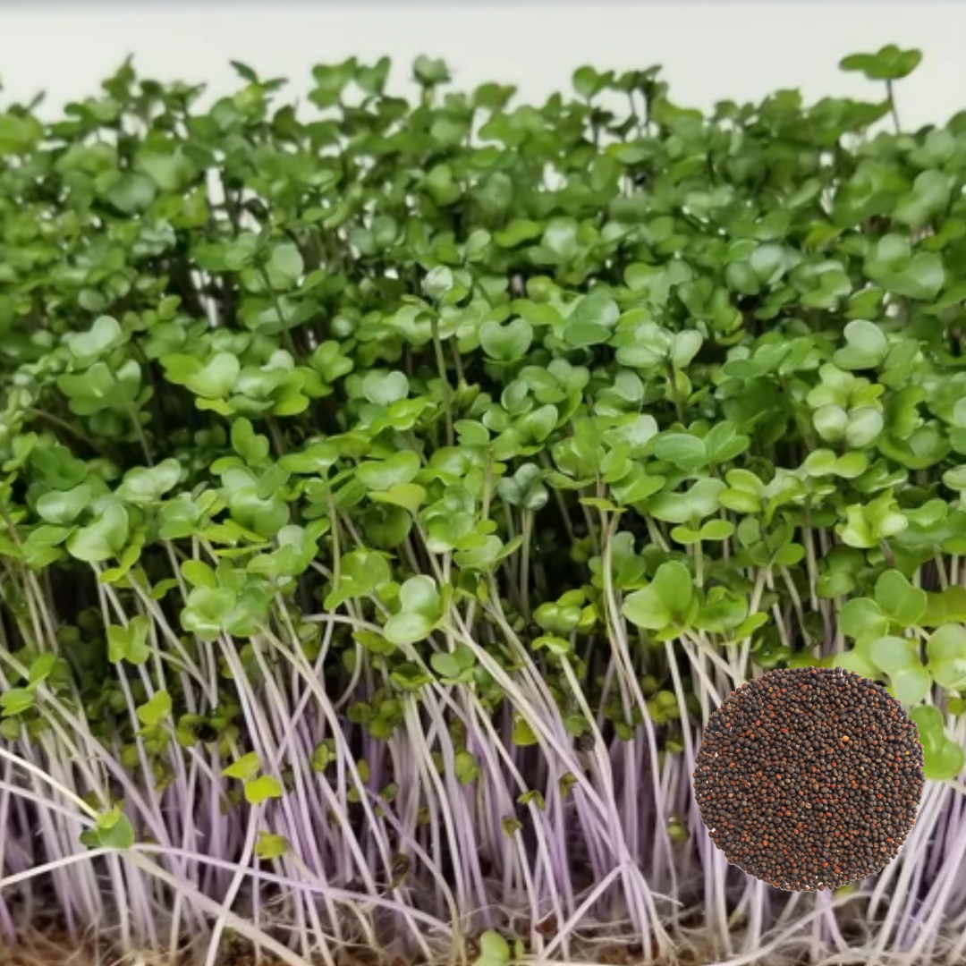 Approximately 100 grams of Kohlrabi Green seeds can produce 450–600 grams of fresh microgreens, depending on tray density and growing conditions.