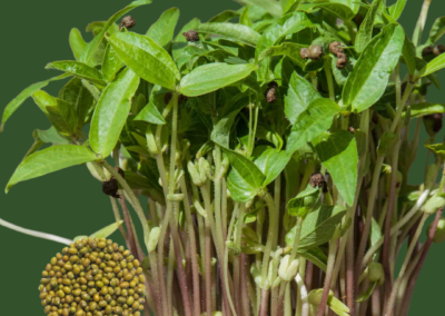 Moong Bean microgreens have a mild nutty flavor with crisp tender stems.