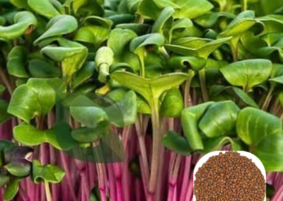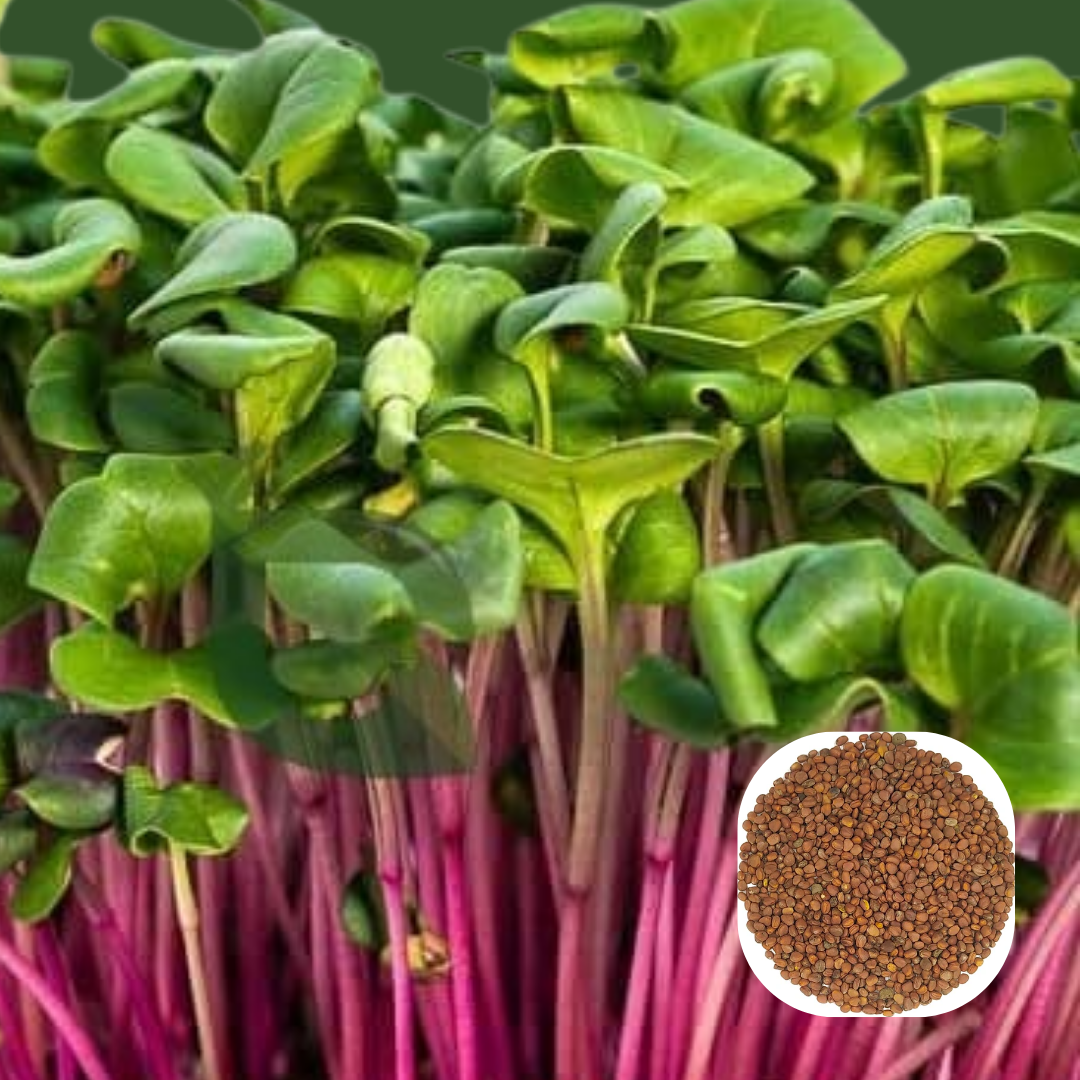 Radish China Rose seeds grow into vibrant pink-stemmed microgreens with a crisp texture and bold peppery flavor. These microgreens add color and taste to dishes such as sandwiches, salads, chaat, and vegetable bowls.