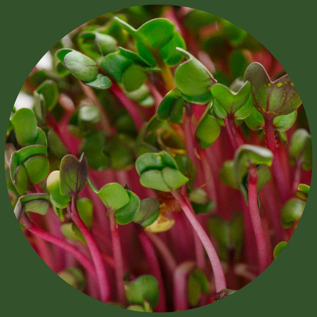 Bold, peppery, and slightly spicy in flavor, Radish China Rose microgreens add a vibrant kick to dishes like salads, wraps, sandwiches, grain bowls, and stir-fries.