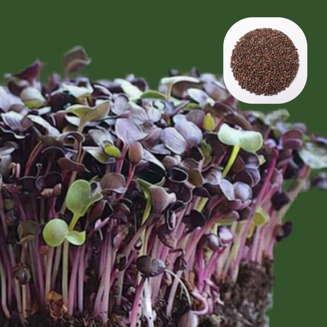 Approximately 100 grams of Radish Purple Sango seeds can produce 350–450 grams of fresh microgreens, depending on tray density and growing conditions.