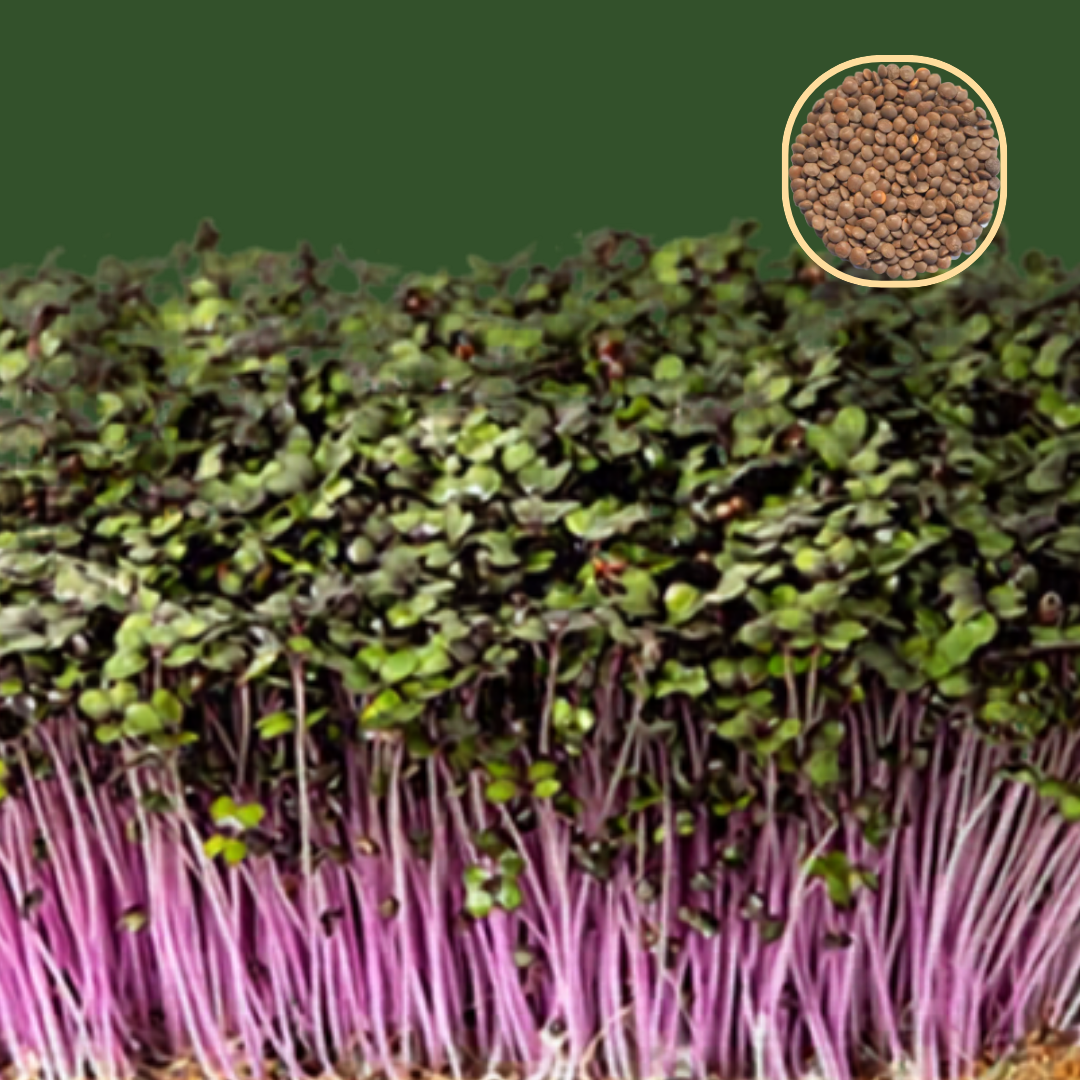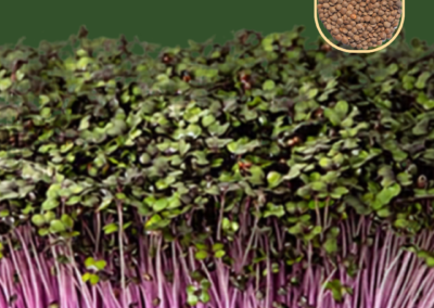 Red cabbage seeds produce vibrant purple microgreens with a mild, slightly sweet cabbage flavor. These colorful greens are rich in antioxidants and vitamins and are commonly used in salads, wraps, grain bowls, and gourmet plating.